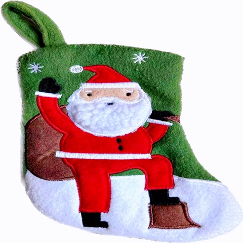 Borgonha veludo verde Xmas meia com diamante Quilting Meia personalizada do Natal