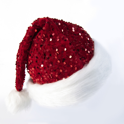 Cổ Điển Màu Đỏ Sequin Santa Hat Với Trắng Faux Fur Trim Và Pompom Cho Giáng Sinh Ngày Xmas Sang Trọng Giáng Sinh Hat